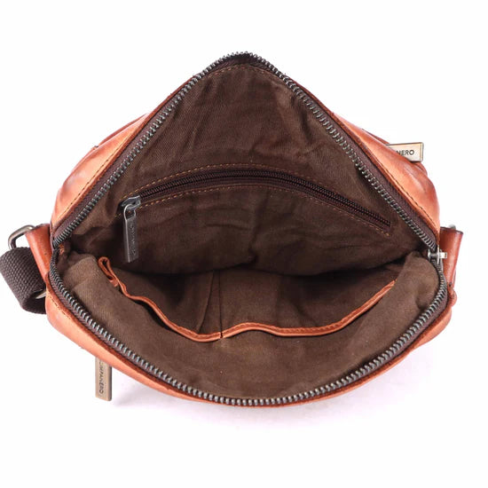 RORY mjukt cognacs färgat läder. Din bästa vän, sitter mjukt mot kroppen, lätt att bära, rymmer mycket trots sin relativt lilla storlek. Logisk & praktisk som alla KOMPANEROS väskor. Användbara fack som alla stängs ordentligt med dragkedjor. Snygga detaljer, hållbar och åldras med patina. Passar till vardag, på resa och även till en snygg outfit. Förhöjer din stil!